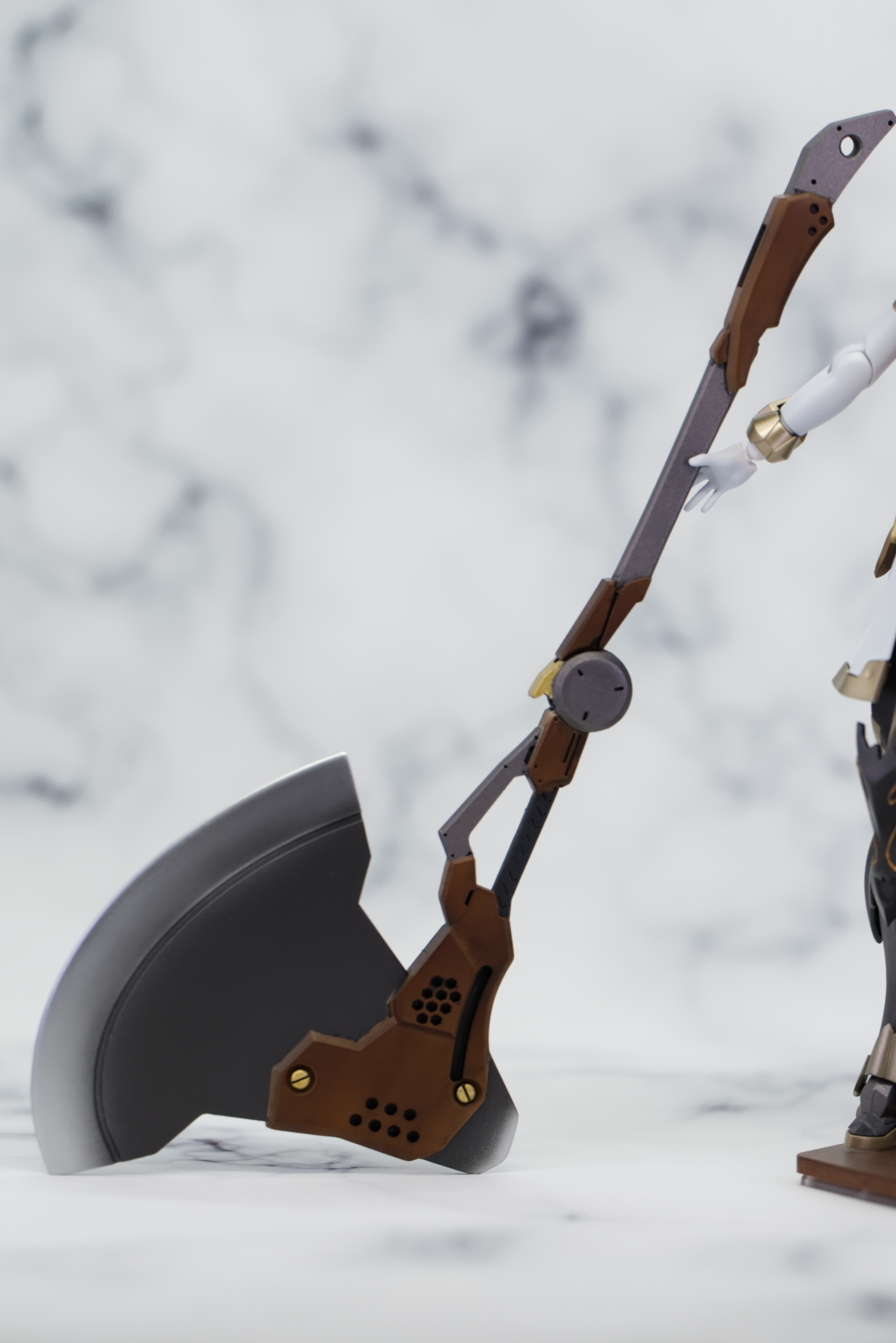 近未来を感じさせるカッコいいデザインでしたが、キャラの世界観に合わせるために木材×金属をイメージして塗装しました。